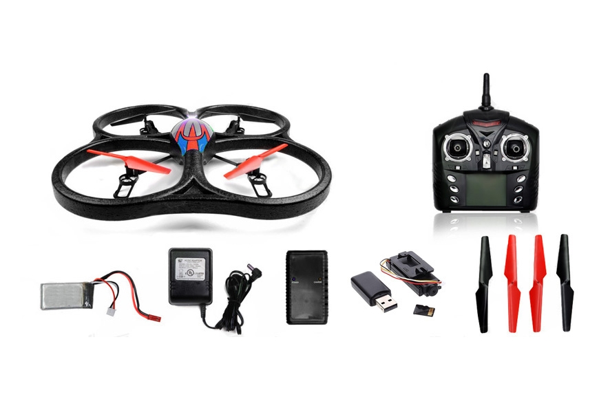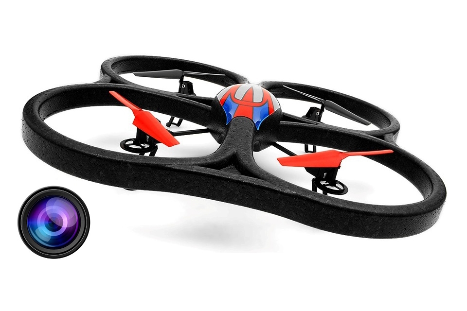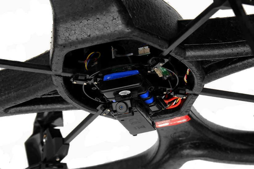 Встроенная камера записывает видео 640x480 со звуком и фотоснимки на карту памяти microSD. Управляется камера пультом управления квадрокоптера: отдельные кнопки для записи видео и для фотосъёмки.