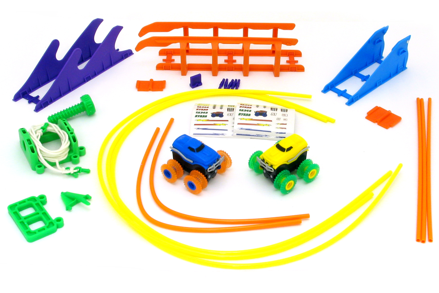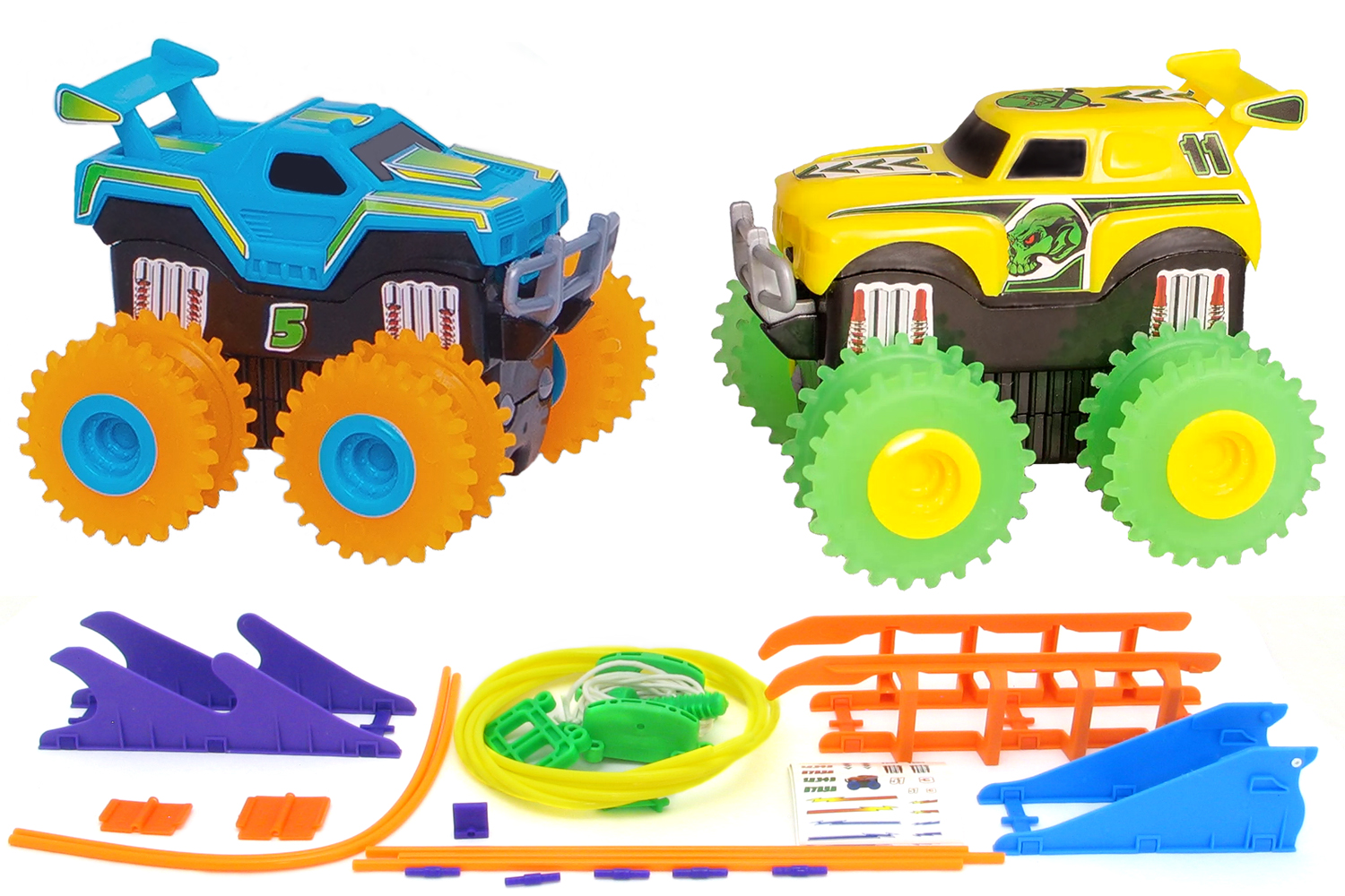 Машинки на бат. Trix Trux набор 2 машинки с трассой (синий+желтый)