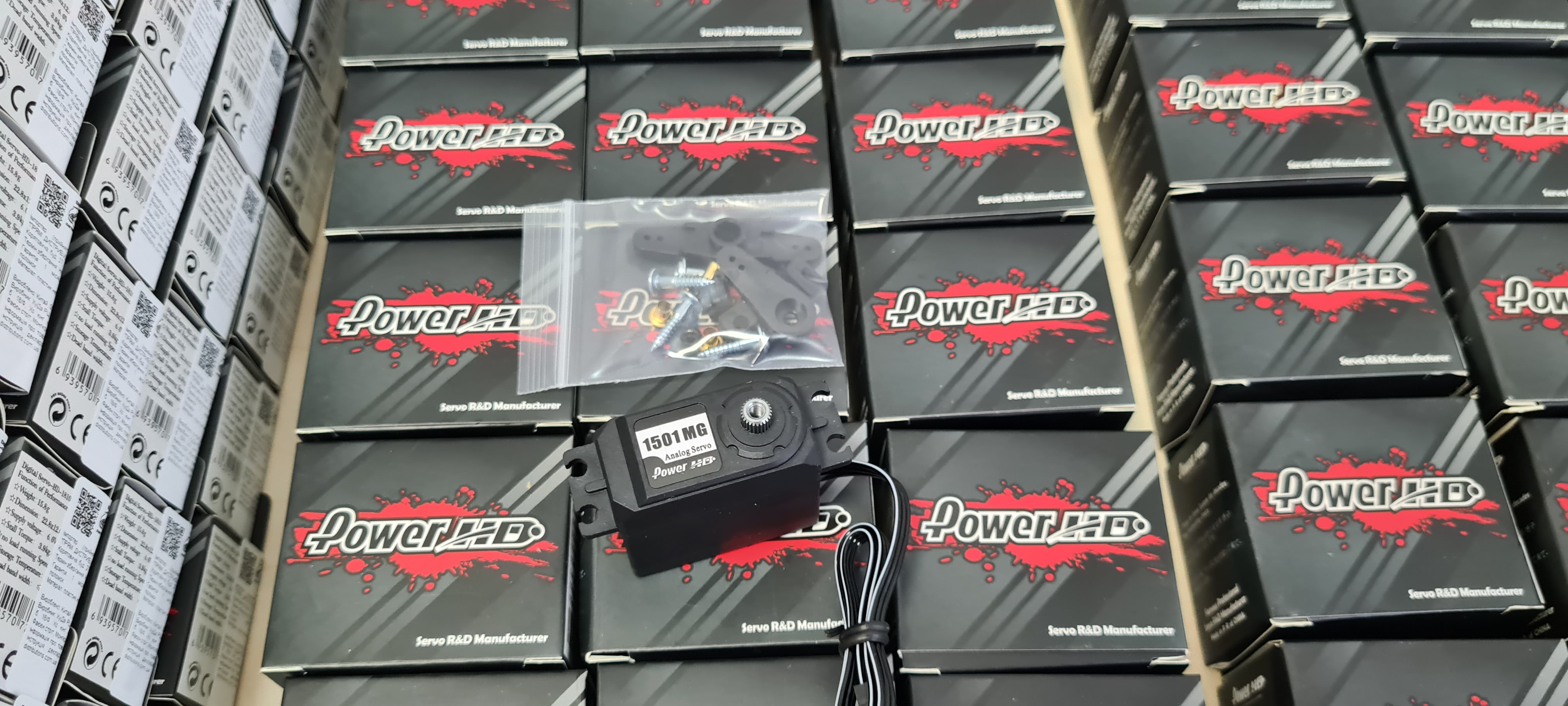 Аналоговый сервопривод (сервомашинка, рулевая машинка) Power HD HD-1501MG стандартного размера с усилием 15,5кг - 17кг. Металлические шестерни редуктора. Скорость 0,16сек - 0,14сек.
